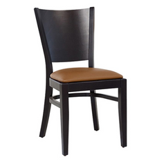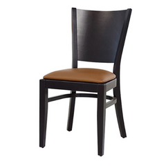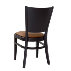 La Dari-01 est une chaise classique en bois avec un siège rembourré. Le dossier incliné semble moderne et dynamique. Les entretoises sous le siège assurent une stabilité supplémentaire. La chaise en bois est très stable grâce au renfort sous l'assise .