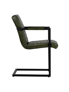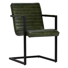 Le fauteuil Elona impressionne par son revêtement en cuir vert de haute qualité et sa structure en acier robuste. Idéal pour les restaurants et les établissements privés, il allie confort, qualité durable et design moderne. La chaise est également disponible en noir et en cognac, parfaits pour des options de conception individuelles.