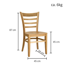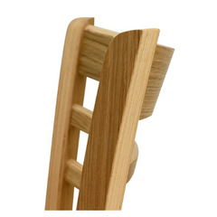 La Harbi-02 est une chaise classique en bois de chêne massif. Le matériau robuste et le renfort sous l'assise rendent la chaise très stable. Le dos est constitué de quatre montants en bois.