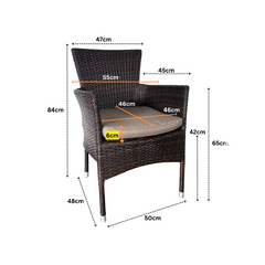 Largeur : 55 cm, profondeur 59 cm, hauteur : 84 cm, hauteur d'assise : environ 48 cm, coussin compris, profondeur d'assise : environ 46 cm, hauteur du dossier : environ 84 cm, largeur du dossier supérieur : environ 47 cm. Poids : 5 kg. De conception moderne, cette chaise de jardin est particulièrement adaptée à une utilisation en extérieur, que ce soit sur la terrasse, dans le jardin, le salon ou le coin repas.