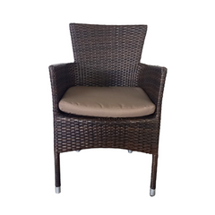 Chaise de jardin en polyrotin résistante aux intempéries avec coussin d'assise marron