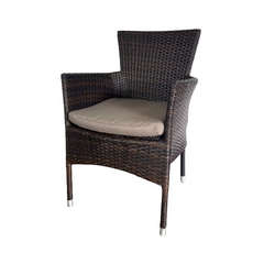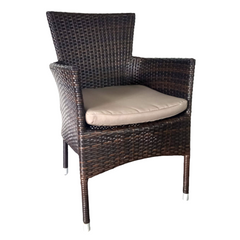 Fauteuil empilable, structure en aluminium avec tressage complet en rotin PE, y compris coussin d'assise avec fermeture éclair, adapté à une utilisation en extérieur - marron-