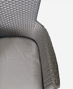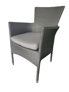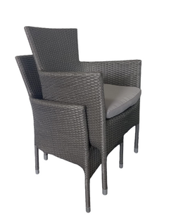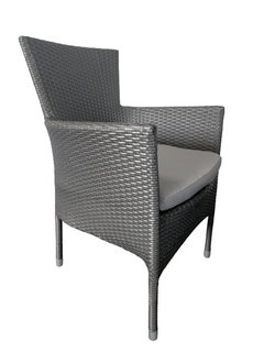 Fauteuil empilable, structure en aluminium avec tressage complet en rotin PE, y compris coussin d'assise avec fermeture éclair, adapté à une utilisation en extérieur - gris-