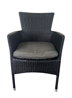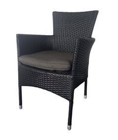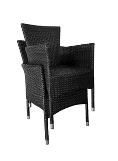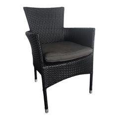 Fauteuil empilable, structure en aluminium avec tressage complet en rotin PE, y compris coussin d'assise avec fermeture éclair, adapté à une utilisation en extérieur - Noir-
