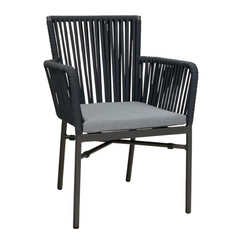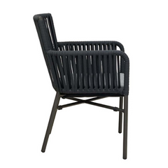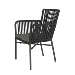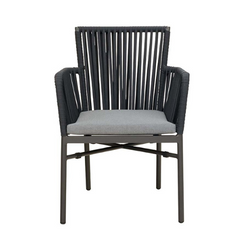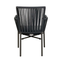 La Rafika Dark Grey est une chaise d'extérieur populaire. Le dos est recouvert d'une maille textilène durable, résistante aux intempéries et facile d'entretien. Le tissage sèche rapidement. Le modèle est empilable.