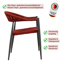 Danino Red - Chaise de terrasse avec accoudoirs résistante aux intempéries - Empilable