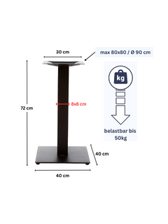 Plateaux de table recommandés : Le cadre de table est recommandé pour les plateaux de table d'une taille maximale de 80x80 cm (carré) ou Ø 90 cm (rond) et de 3 cm d'épaisseur.