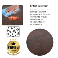 Runder Bistrotisch mit robuster Topalit-Tischplatte in der Farbe Cyprus Metal.