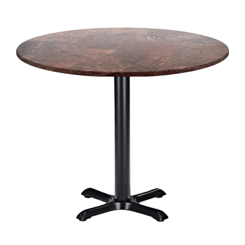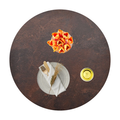 Runder Bistrotisch mit robuster Topalit-Tischplatte in der Farbe Cyprus Metal.
