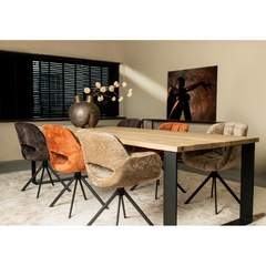 Dieser stilvolle und bequeme Esszimmerstuhl Rostbraun von Acht & Acht kombiniert ein modernes Design und perfekten Sitzkomfort. Die zarte, samtige Polsterung in einer Warme braune Farbe fügt eine luxuriöse Ausstrahlung an Ihr Interieur hinzu. Dieser Stuhl mit Armlehnen hat eine schöne Schale, gepolstert mit einem bequemen Stoff. Daneben sorgt der offene Rücken dafür, dass Sie weiter nach hinten sitzen können, was dem Stuhl noch besseren Sitzkomfort verleiht. Das robuste Metallgestell sorgt für einen modernen Look und extra Stabilität. Die Beine sind pulverbeschichtet in schwarz, was sorgt für eine hohe Qualität und eine lange Lebensdauer.