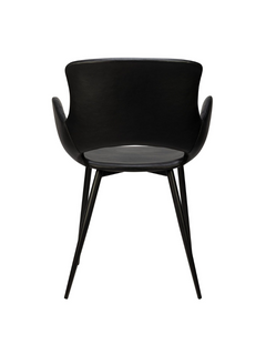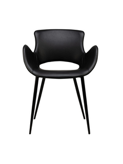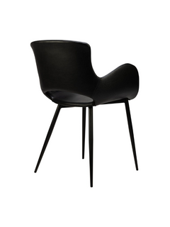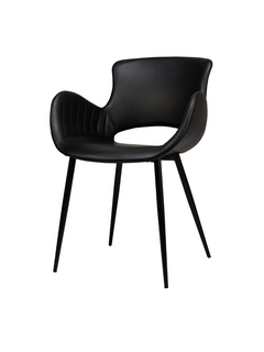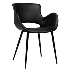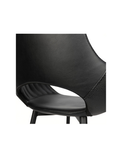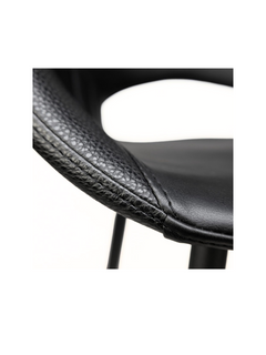Der Armstuhl Kanu-BL zeichnet sich durch ein luftiges Design mit einer Öffnung in der Rückenlehne und einem eleganten schwarzen PU-Lederbezug aus. Die Armlehnen sind mit gesteppten Details versehen, und das pulverbeschichtete Metallgestell verleiht dem Stuhl Stabilität sowie eine luxuriöse Ausstrahlung. Er eignet sich für Gastronomie und private Räume und ist auch als Barhocker erhältlich.