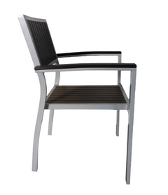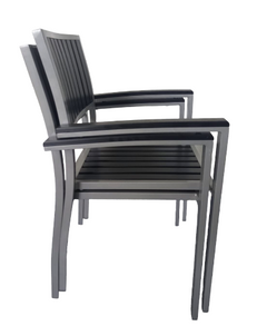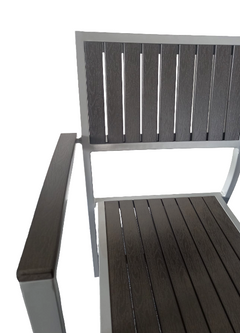 Hochwertiger Terrassenstuhl mit Armlehne wetterfest, Gartenstuhl aus Eukalyptusholz und Aluminiumgestell – Stapelbar | Anthrazit | Innen- und Außenbereich.