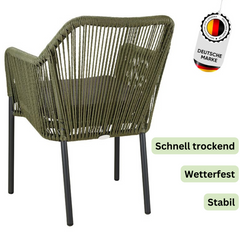 - Sitzfläche und Rückenlehne aus gedrehtem Kunststoffgeflecht