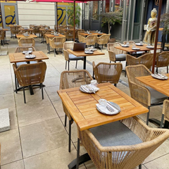 Terrassenstuhl mit Armlehnen und Sitzkissen - stapelbar
