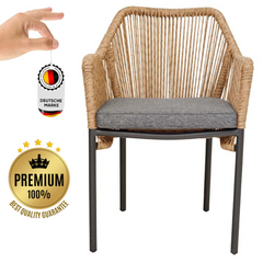 - Sitzfläche und Rückenlehne aus gedrehtem Kunststoffgeflecht