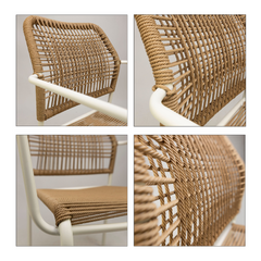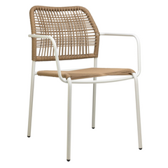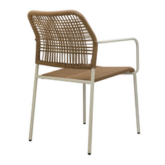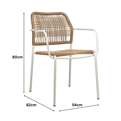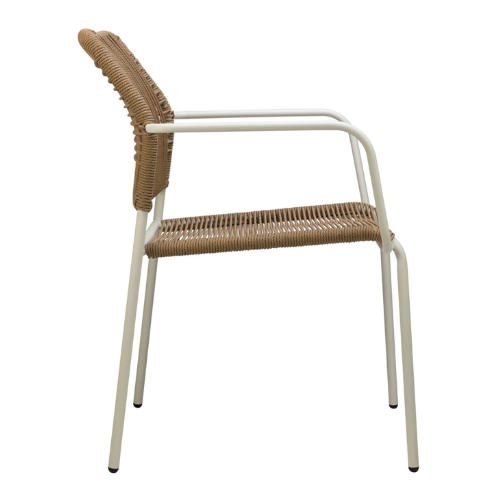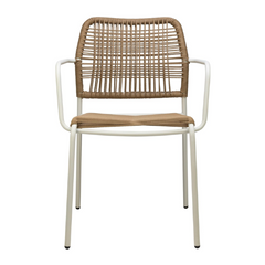 Der Terrassenstuhl mit Armlehne vereint Stil und Komfort, perfekt für jede Terrasse. Er hat ein schlichtes, modernes Design und ist in den Trendfarben Orange, Weiß/Natur und Grün erhältlich. Das Modell ist stapelbar.