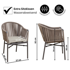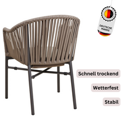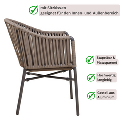 Moka-03 Der stapelbare Stuhl verbindet Komfort, Langlebigkeit und Stil. inkl. Sitzkissen. Das Aluminiumgestell bietet nicht nur Stabilität, sondern auch eine hohe Witterungsbeständigkeit, während das Textylen-Geflecht im Rückenbereich Flexibilität und Leichtigkeit schafft.