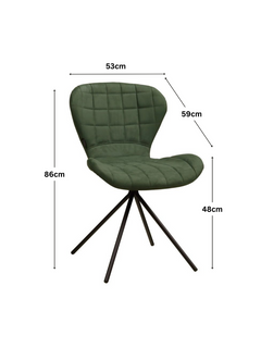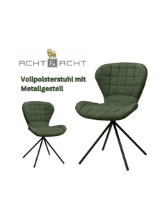 Ein moderner Vollpolsterstuhl Grün mit einem eleganten Metallgestell. Die gepolsterte Sitzfläche und Rückenlehne sind mit einer stilvollen Naht im Karomuster bestickt, die dem Stuhl eine hochwertige Optik verleiht. Dank seines zeitlosen Designs und des hohen Sitzkomforts ist der Stuhl eine ideale Wahl für Wohn- und Essbereiche.